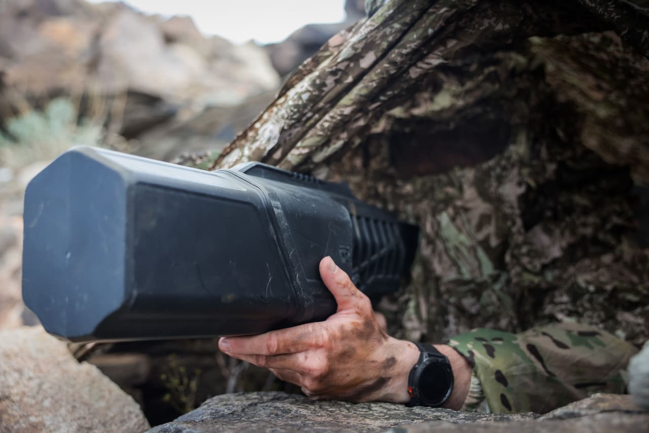 Pictured: A British soldier tests a counter-drone system from Drone Shield, as part of Project Convergence Capstone four in Fort Irwin, California, in March 2025. (UK MoD © Crown Copyright 2025)