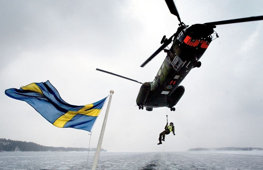 A Swedish Air Force helicopter participates in a mission in the Stockholm Archipelago. (Shutterstock)