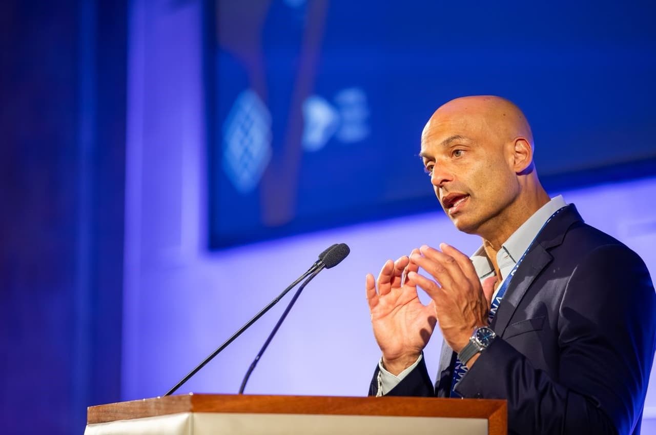 NATO DIANA Interim Managing Director James Appathurai speaking at DIANA's Industry and Investor Demo Days earlier this year. (NATO DIANA)