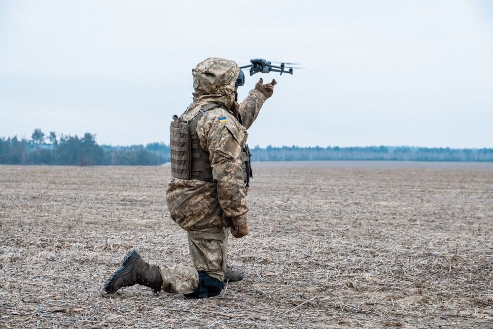 A Ukrainian soldier launches a quadcopter UAV. (Shutterstock)